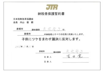 矢吹 安子氏が納税者保護誓約書に署名しました。